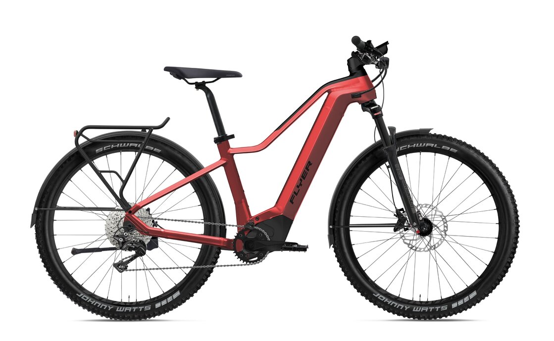 Dank der hochwertigen Ausstattung des Flyer GOROC 2 ist es nicht nur ein zuverlässiger Begleiter auf langen Touren, sondern auch ein echter Hingucker. Das sportliche Design in Rot macht das E-Bike zu einem Blickfang auf jeder Strecke.